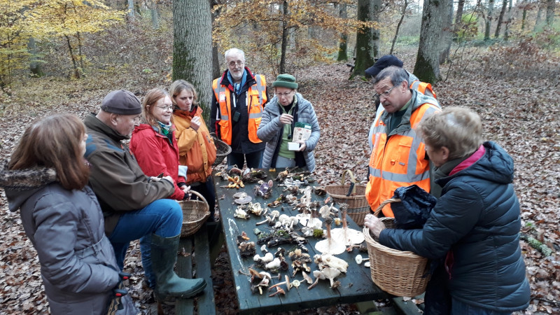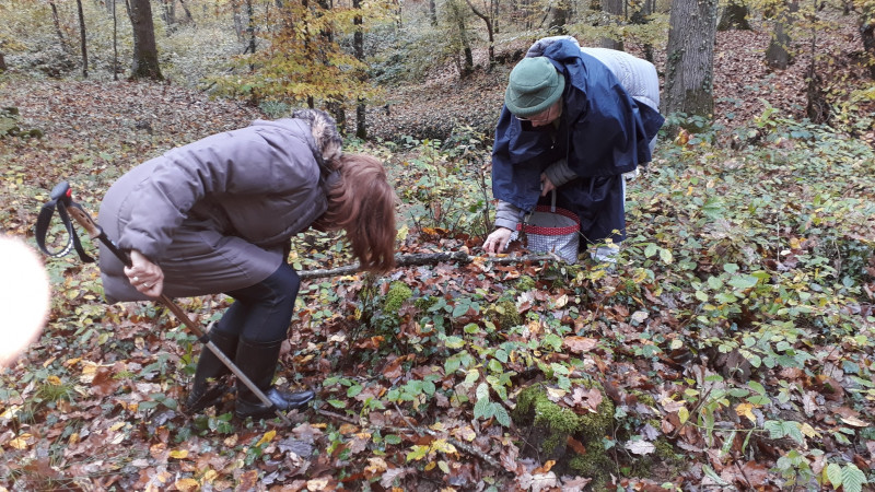 Pour cette sortie dans la forêt du Thureau du Bard du 13 Novembre, 11 adhèrent(e)s étaient présent(e)s. Le temps était bien couvert, nous avons eu droit aux rayons du soleil par moments mais nous avions tous prévu nos vêtements de pluie.