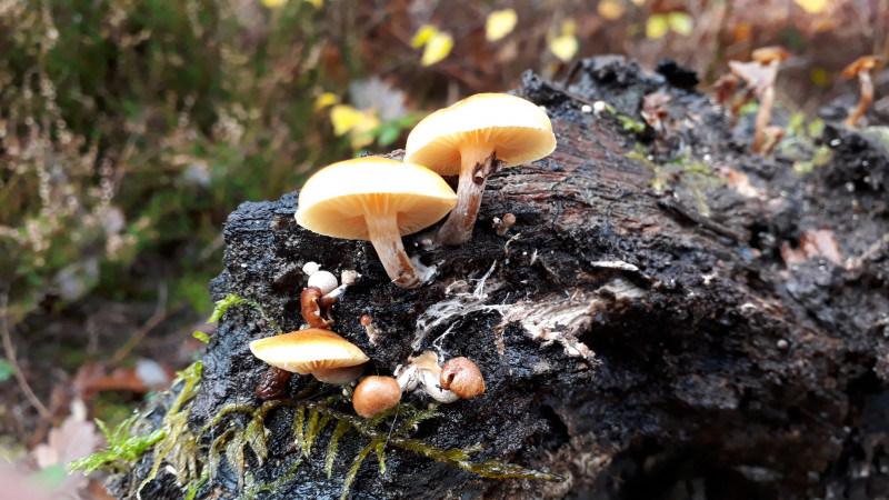 Nous avons parcouru les sentiers bien humides, et bien observés les champignons cachés sous les feuilles tombées .