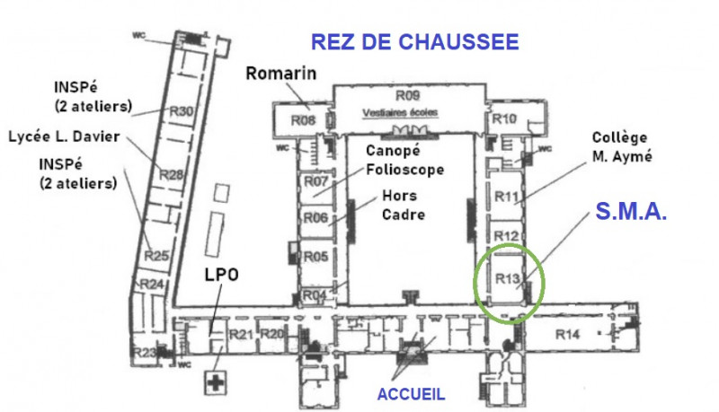 Accès par la rue des Moreaux, horaires d'ouverture de 10h00 à 12h30 le matin et de 13h30 à 17h00 l'après-midi.